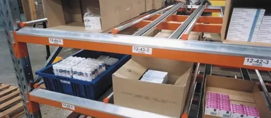 A carton live shelving system can be used in a variety of storage setups, including shortspan steel shelving, longspan shelving and pallet racking systems.